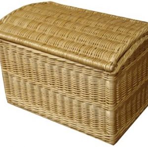 Malle avec couvercle d’emboîtage – Le tressage en damassé en partie haute est remplacé par un tressage crocane identique au reste du tressage.
